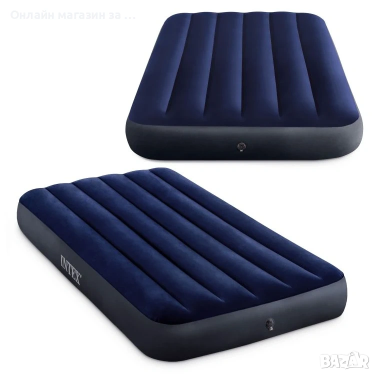 Кадифеният матрак INTEX с размери 191x99x25 cm е идеален за 1 човек. Изработен е от здрав PVC, а горната част е покрита с приятен на допир водоустойчив кадифен материал. Цялостният приятен син цвят ще пасне на всеки интериор. Бостънският вентил ще ви позволи да изпуснете въздуха за минута, след което да сгънете матрака и да го приберете в гардероба.