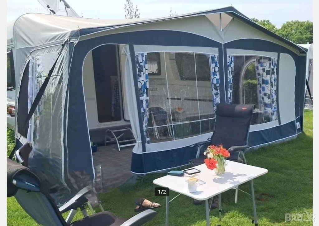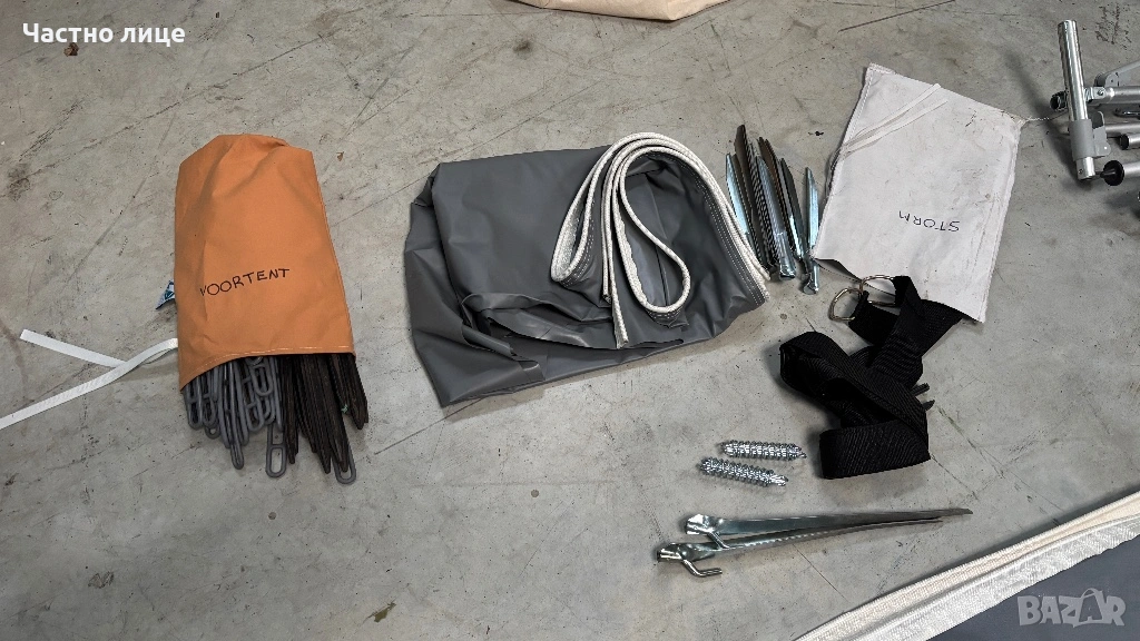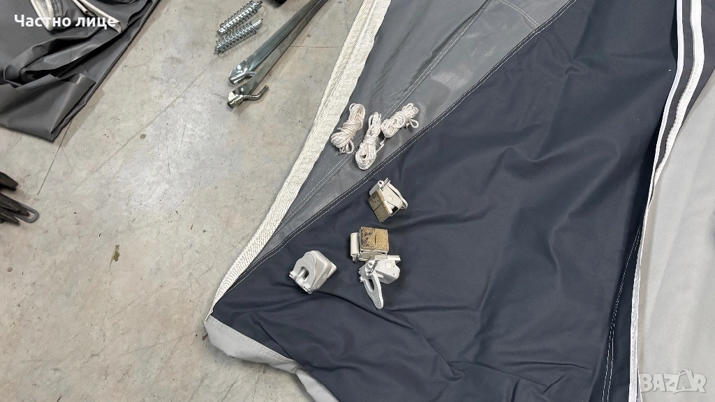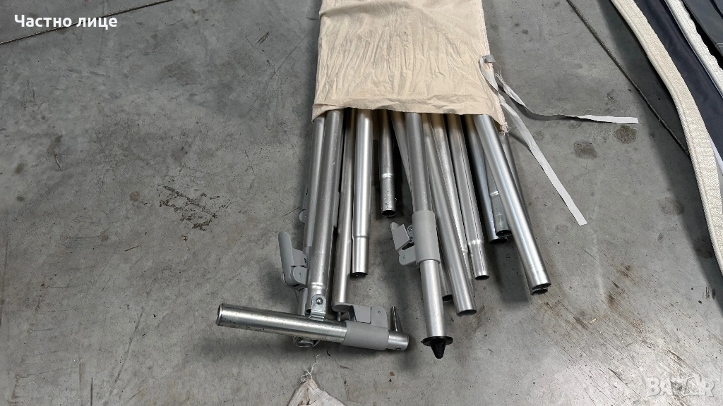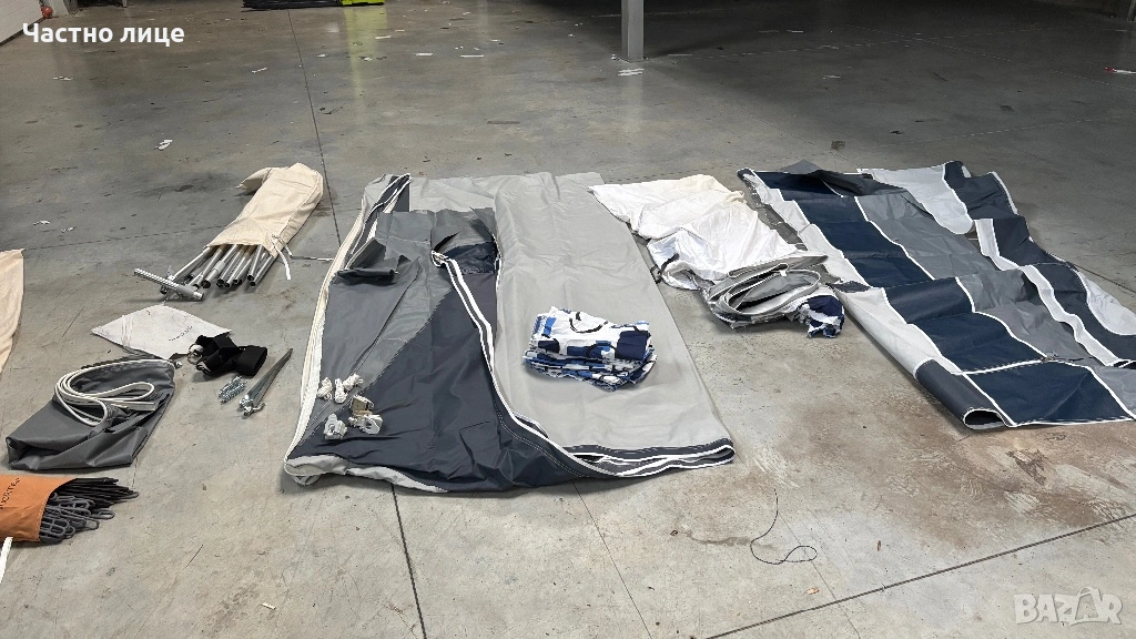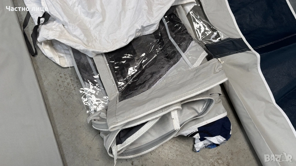 Пълен комплект-пола за краваната, колчета за укрепване, Комплект алуминиеви пръти Easygrip,колани против буря,пердета и килим за пода!На двете страници има комарници!