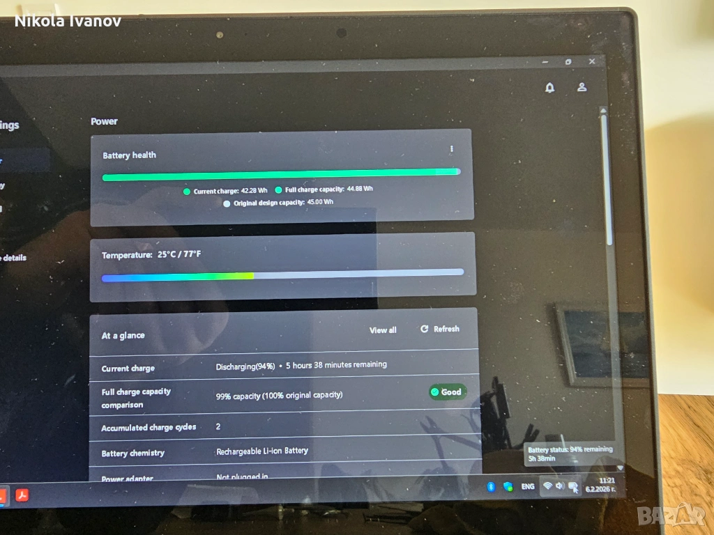- Батерия - 100% Живот на 2 цикъла 45Wh (издържа около 3 часа според натоварването)