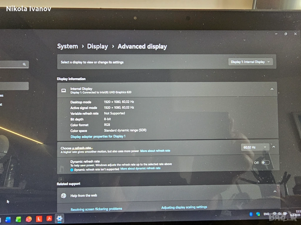 - Видеокарта - Intel UHD Graphics 620