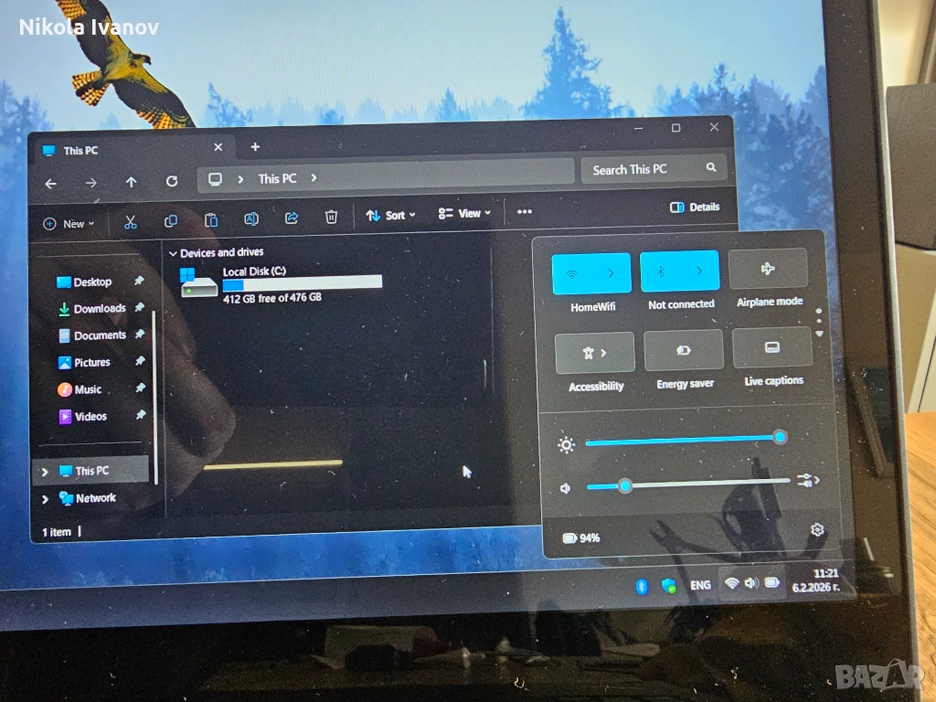 - Зарядно - 65W USB Type C оригинално включено в комплекта (лаптопа може да се зарежда и със зарядно за телефон)
