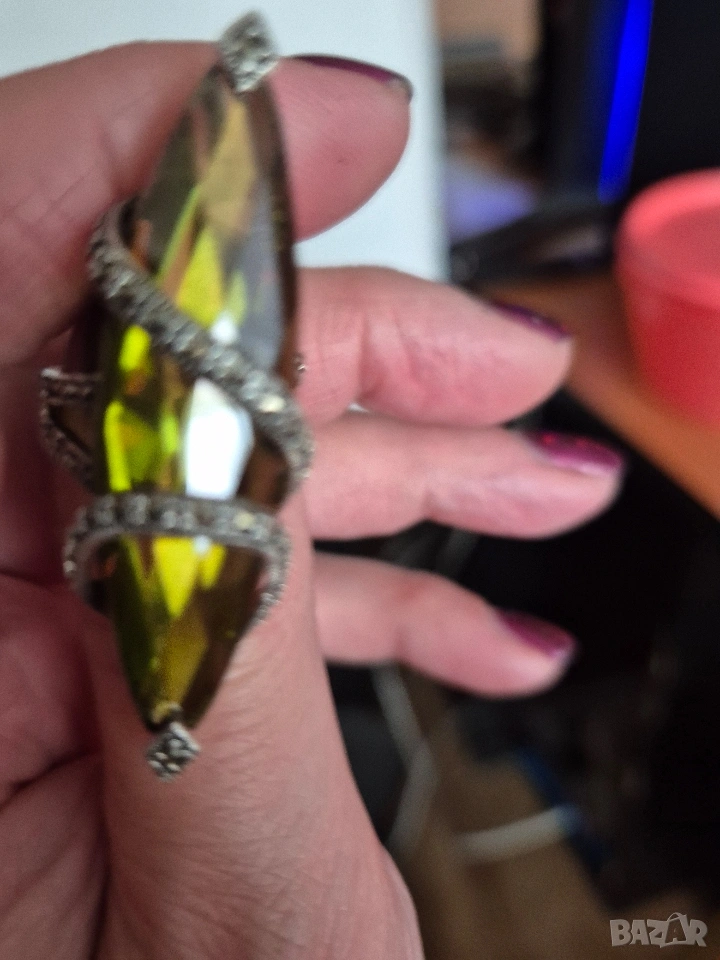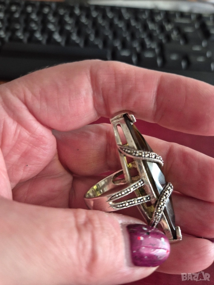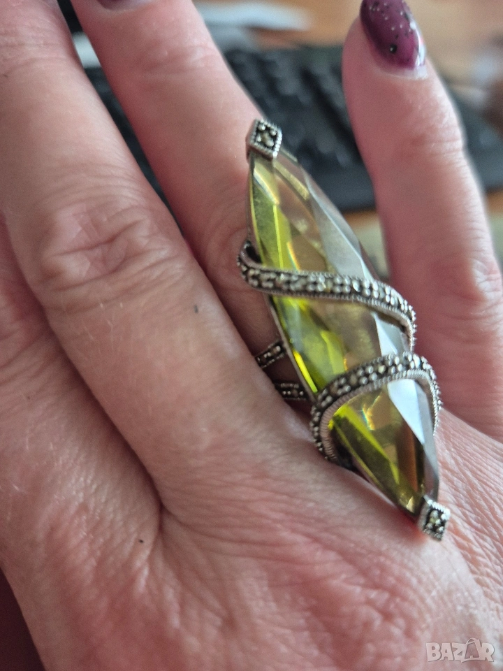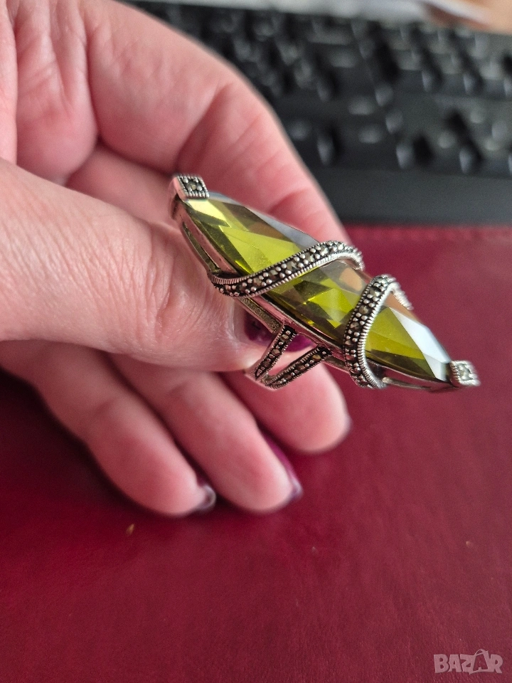 почти нов, много ексравагантен, с огромен камък и маркезити, размер 54, дълж 4.5 см