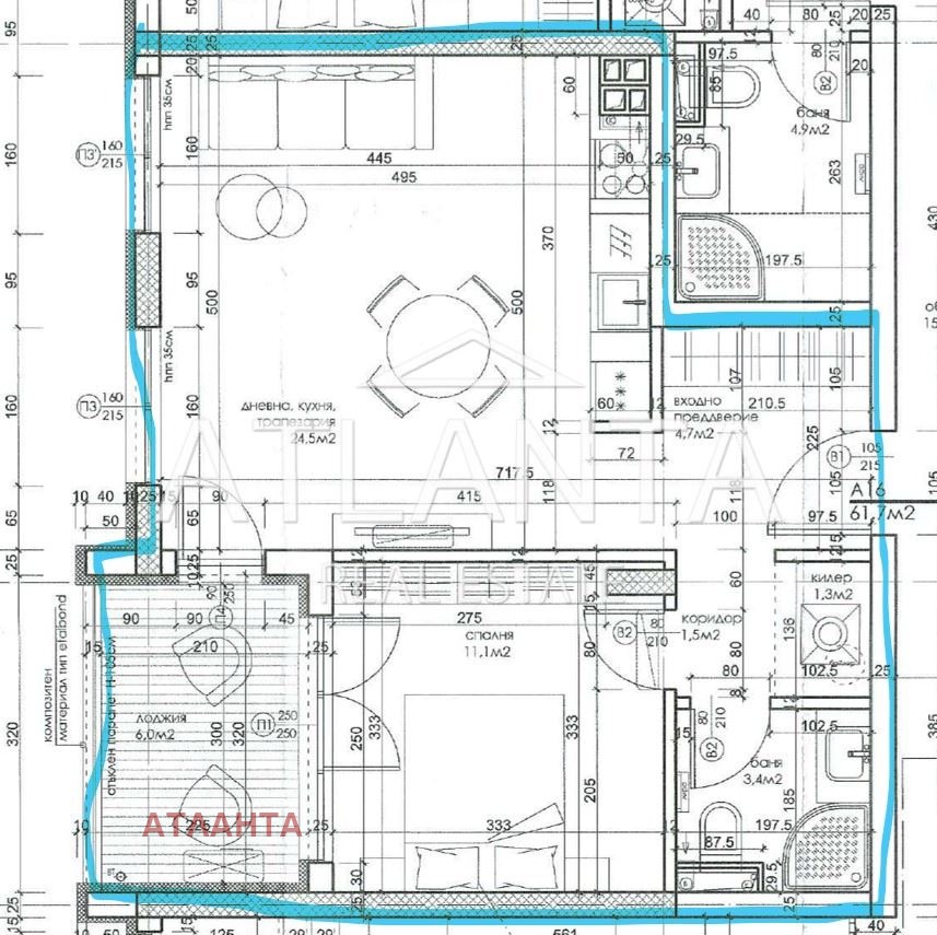 Дневен тракт с кухненска част 24,5 кв.м.