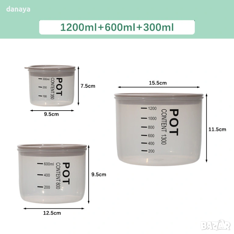Кутии за съхранение на храна, пластмасови буркани за храна с капак, кухненски контейнери с мерителна скала – практично и удобно решение за подредена кухня и по-лесно ежедневие. Комплектът включва три контейнера с различна вместимост, които покриват нуждите както за съхранение на малки количества, така и на по-обемни продукти.