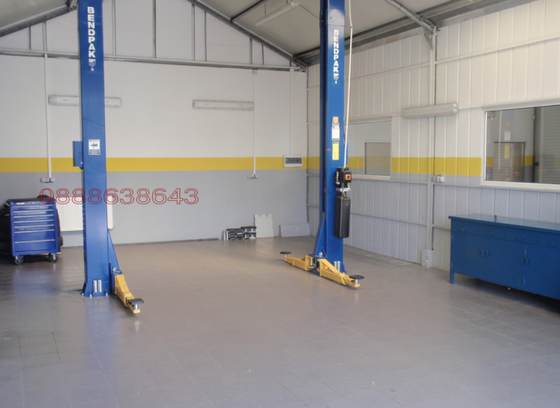Халето е оборудвано с 1бр. двуколонен хидравличен подемник 4,5 t - подходящ за по-големи бусове и кемпери.