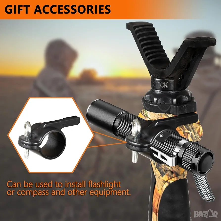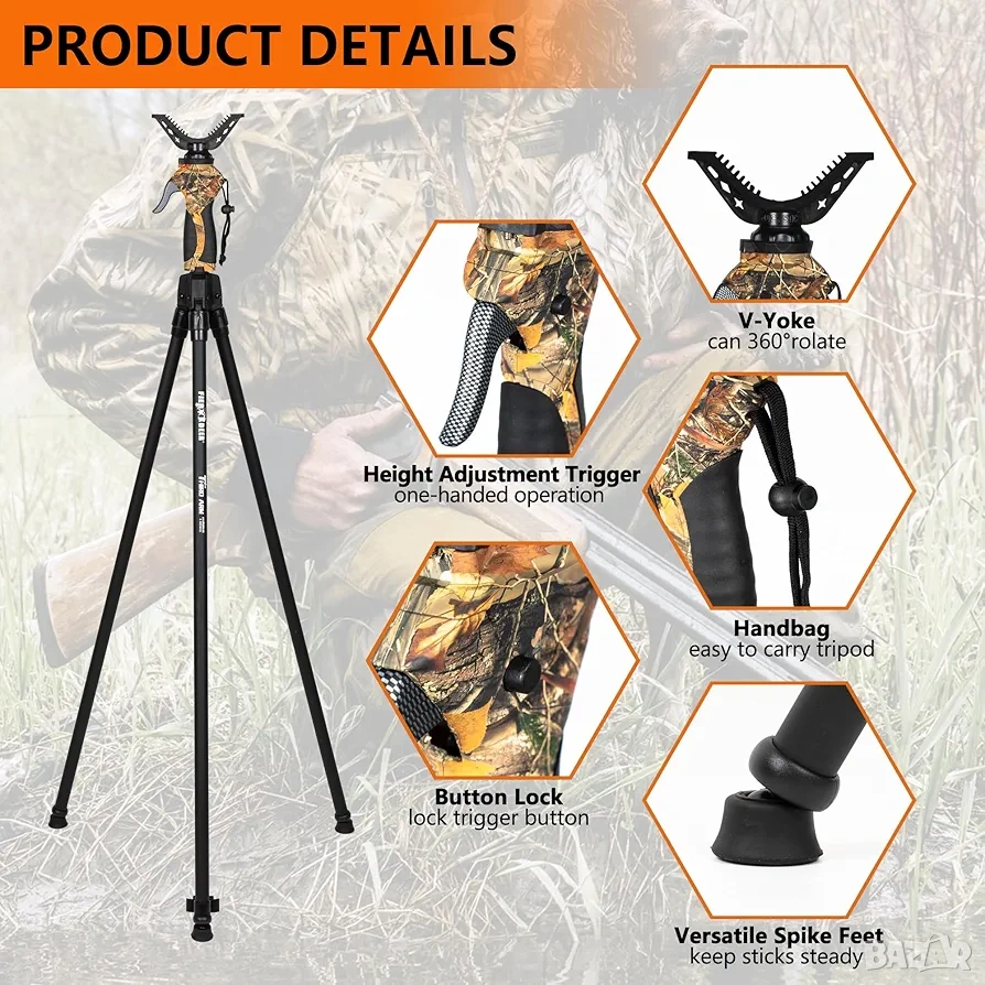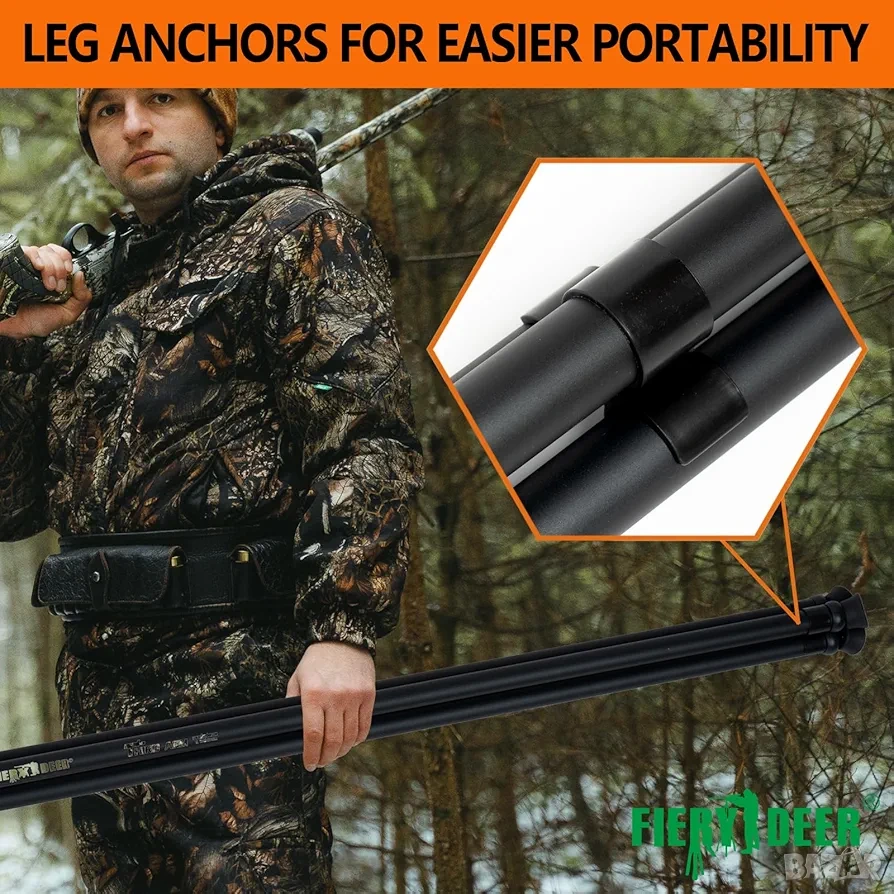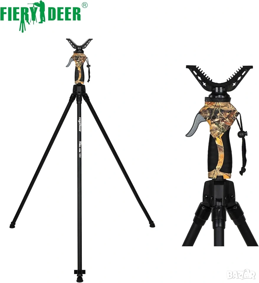 ловен трипод, опора за стрелба, FIERY DEER, трипод за лов, shooting stick, ловни аксесоари, алуминиев трипод, спусък трипод, ловна екипировка.