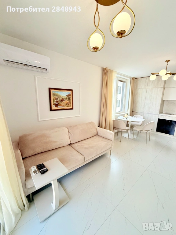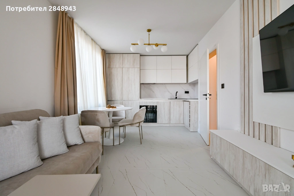 Обзавеждане и състояние: Апартаментът е изпълнен с внимание към детайла и висок клас материали. Предлага се напълно обзаведен и оборудван: фурна, керамични котлони, хладилник с фризер, абсорбатор, пералня, съдомиялна, телевизори. Готов за нанасяне или пускане под наем, без необходимост от допълнителни вложения.