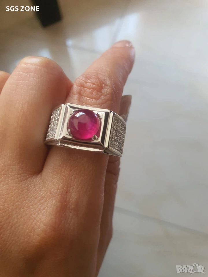 Стилен мъжки пръстен с рубин, размер 21 мм. Още снимки и видеа на продукта в Instagram и Facebook sgs.zone, уебсайт sgs.zone. Можем да изпратим допълнителна информация чрез Viber. Изпращане Speedy и Эконт. Шоурум в София, Дондуков, 53. Всички продукти са със сертификати и подаръчна кутия. Продукти имат допълнителни български маркировки