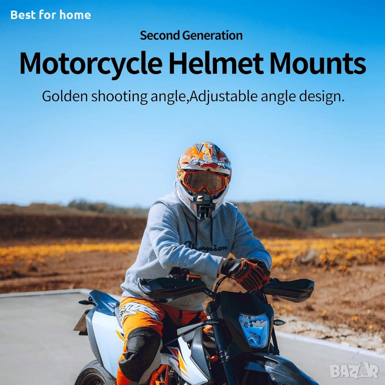 Аксесоари за закрепване към брадичката на каска: Този комплект аксесоари за монтаж е подходящ за GoPro и повечето екшън камери и мобилни телефони. Той е специално проектиран за монтиране на екшън камера или мобилен телефон към позицията на брадичката на каската, осигурявайки ви отлични снимки на мотоциклет.