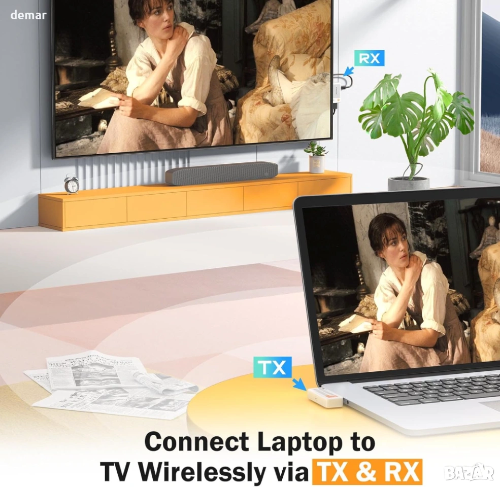 Lemorele Безжичен USB C предавател и приемник, 164FT/50M, 5G HDMI