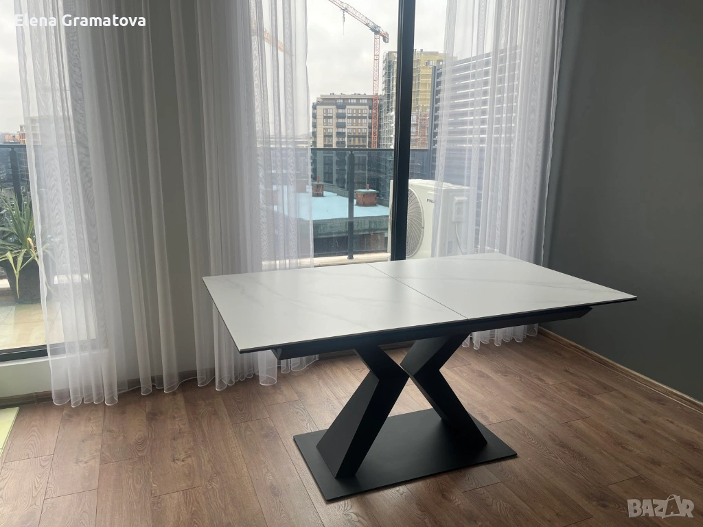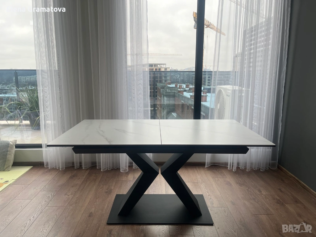 разтегателна трапезна маса 160/90/76 метална основа и керамичен плот