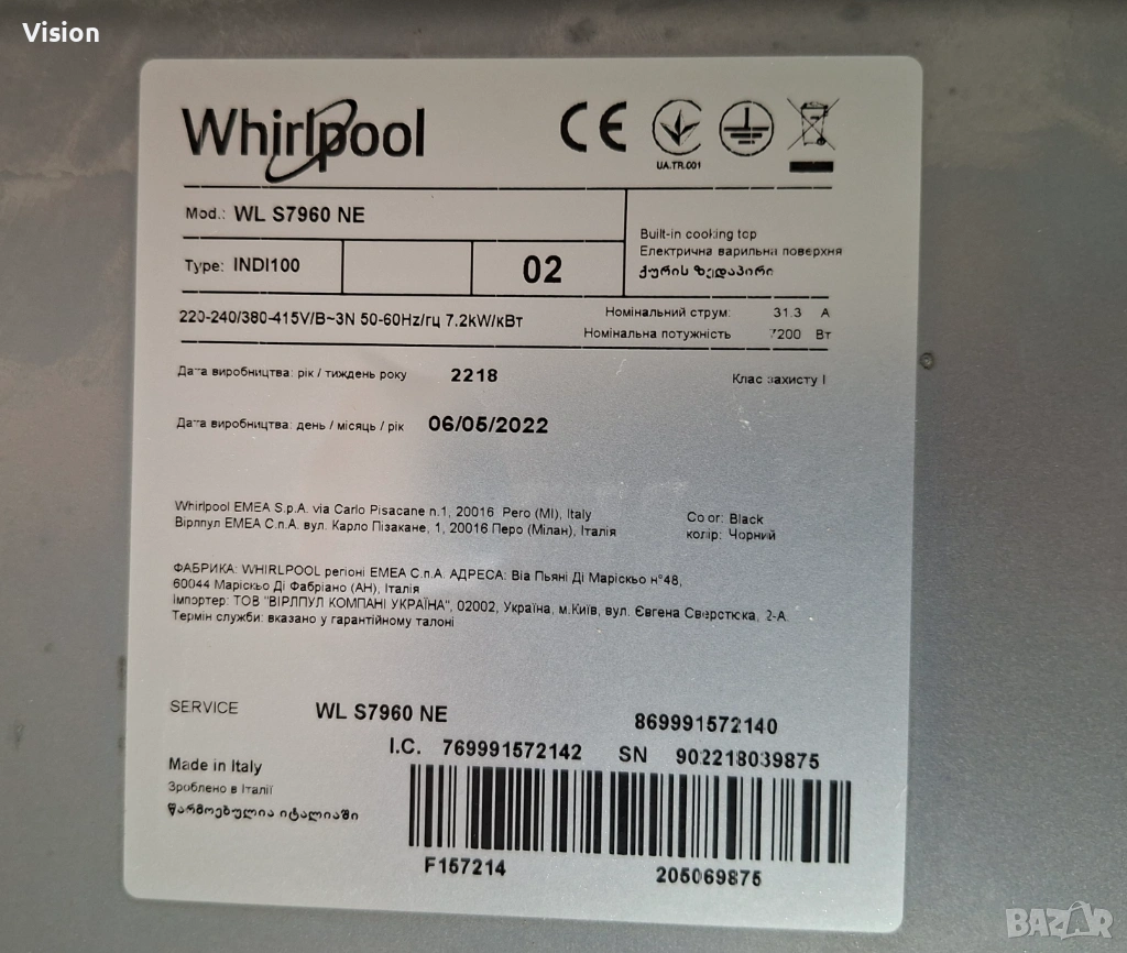 Съкло за Индукционен Werlpool WL S7960 Плот керамичен → Обява 53382035