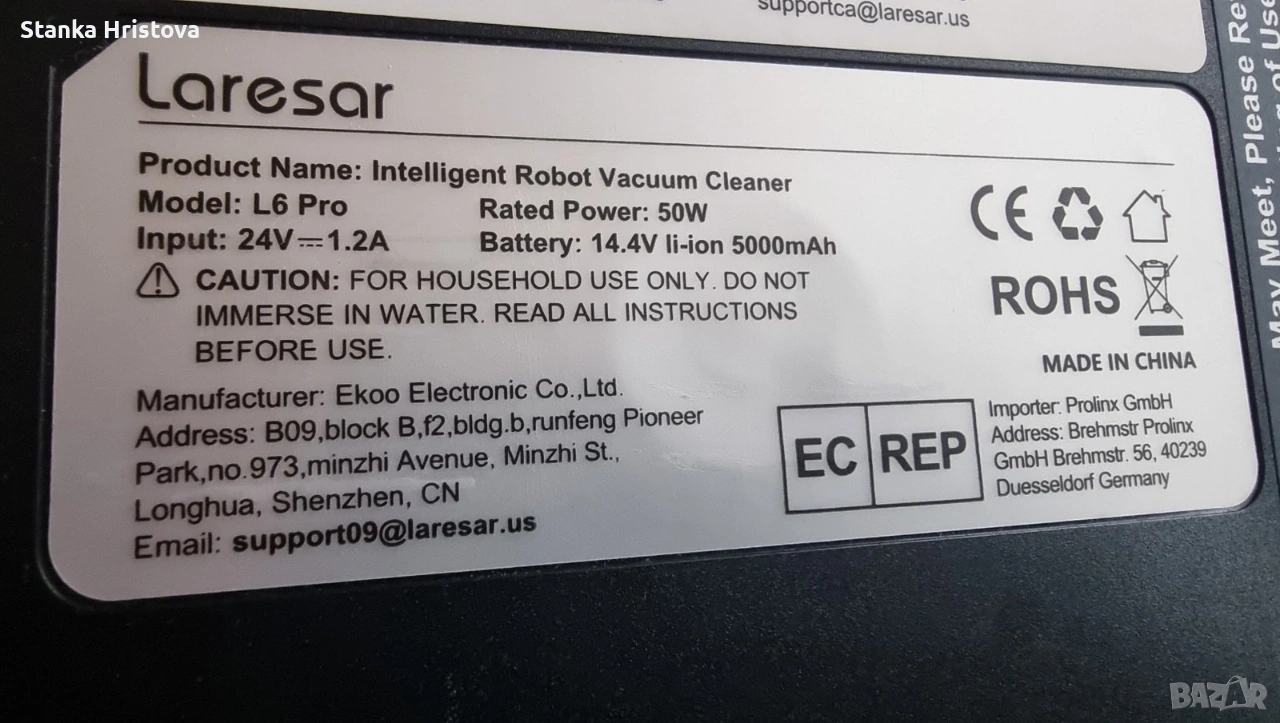 Продавам Прахосмукачка робот Lalesar L6 Pro. Прахосмукачката показва , че се зарежда и че е заредена. Започва да работи , прави един кръг и се връща пак на зарядната станция. Липсва и торбичката за отпадъците и парцалчето за миенето. Много е запазена, почти като нова е. Внос от Германия.