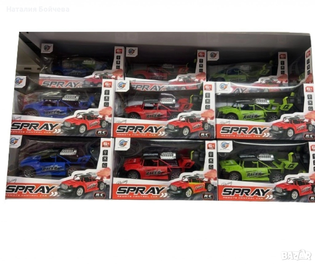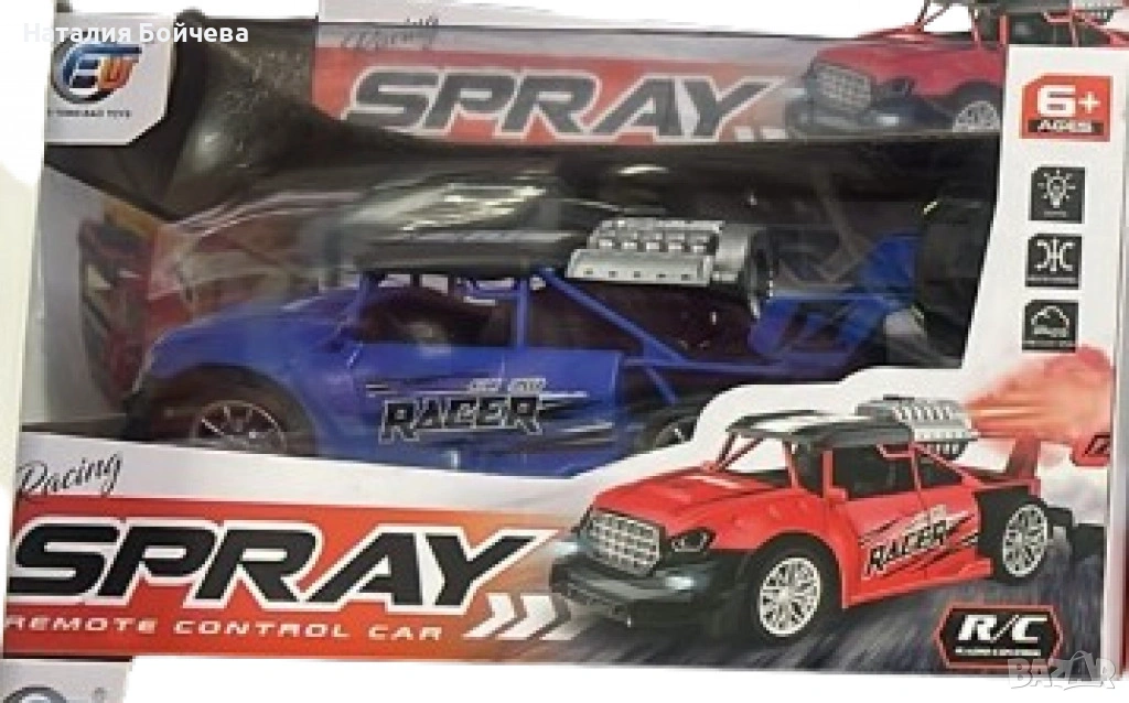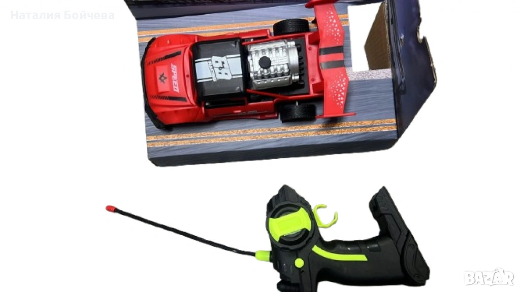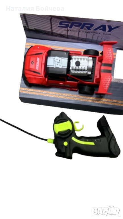 Комплектът съдържа кола, дистанционно управление и шишенце.