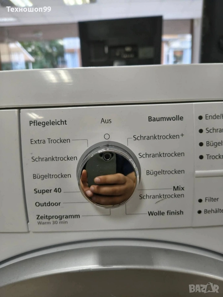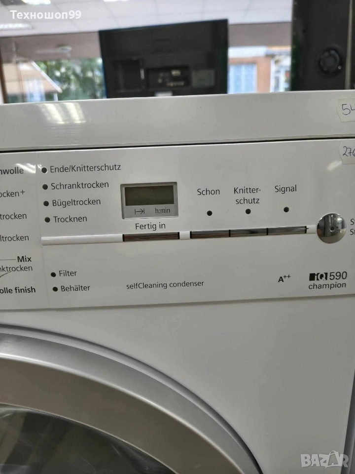 СУШИЛНЯ SIEMENS iQ 590 extraKLASSE 🇩🇪🇩🇪ВНОС ОТ ГЕРМАНИЯ🇩🇪🇩🇪 ▪️ТЕРМОПОМПА ▪️Капацитет:7 кг. ▪️Енергиен клас: А++ ▪️Самопочистващ се кондензатор ▪️LCD дисплеи ▪️Отложен старт ▪️програма за вълнени и копринени дрехи ▪️функция лесно гладене ▪️система против намачкване на прането ▪️индикатор за пълен резервоар ▪️индикатор за край на програмата ✅️ЦЕНА:540 лв. ✅️ГАРАНЦИЯ: 3 МЕС. 🚛Безплатен транспорт!! 📍 Адрес: Сливен, ул. Славянска 8 (Добри Желязков) 📞 Телефон: 0895682001 ✨ В Техношоп99 вярваме, че уредите не са просто техника – те правят дома уютен. Ела като клиент, тръгни като приятел! 0895682001