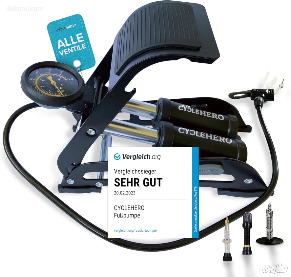 Висококачествена крачна помпа с двоен цилиндър, осигуряваща бързо и ефективно напомпване с минимално усилие.