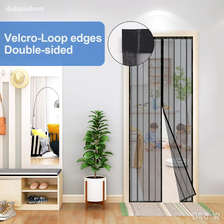 Магнитна мрежа против комари 80x220 см – за врата, черна