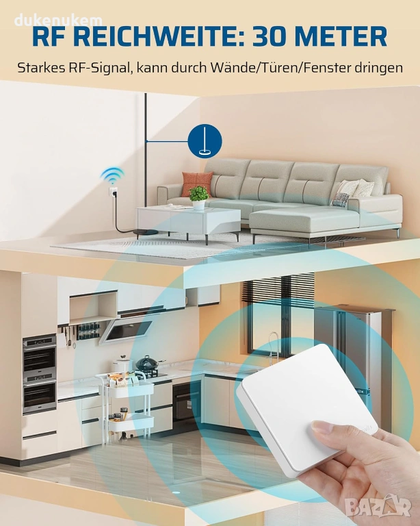 Безжично управление (RF) – стабилен сигнал през стени и врати