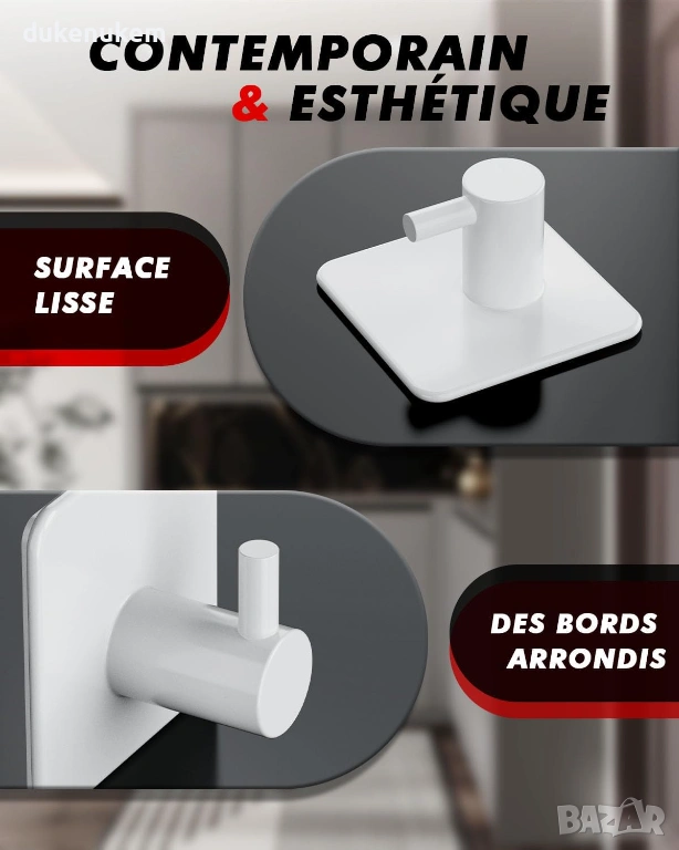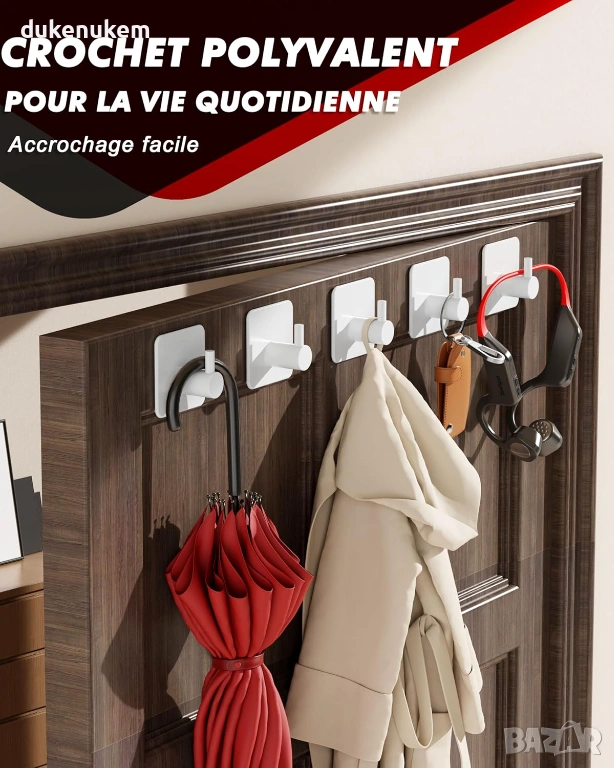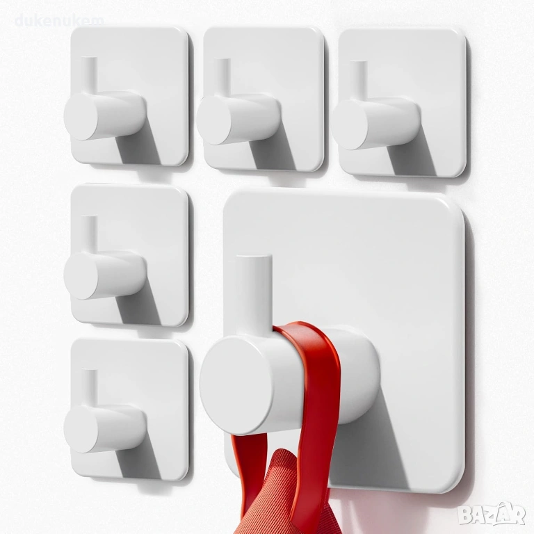 Самозалепващи куки за кърпи – 6 броя, неръждаема стомана, бели