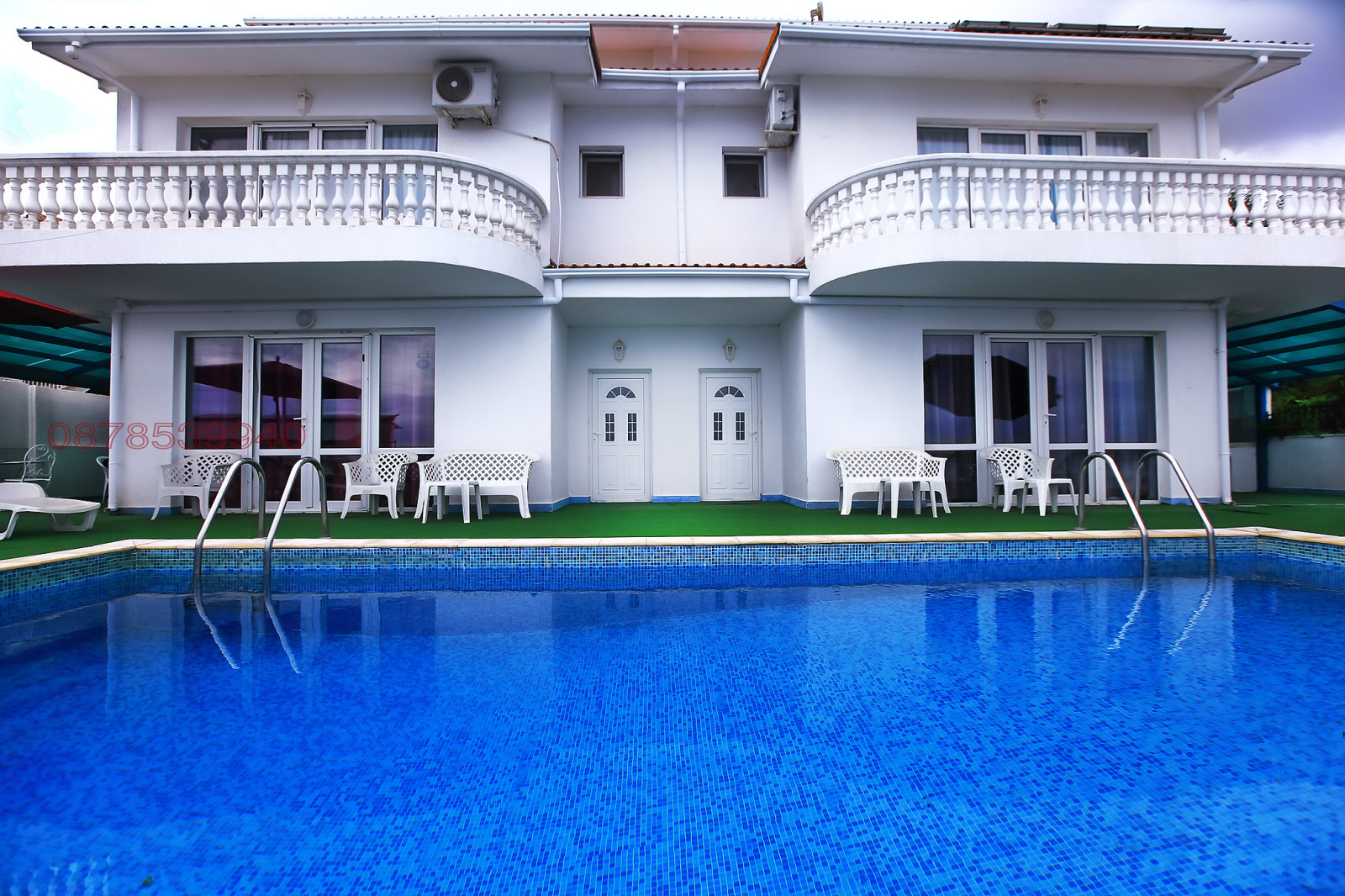 Огромна луксозна триетажна вила, състояща се от две самостоятелни части, после пълна модернизация и рестайлинг 2025, със скъпи мебели и уреди (включително оригинални италиански, много неща са нови). Всяка част от вилата разполага с дневна+ кухня и три спални с вградени бани. На площадките са изградени големи гардероби. Напълно оборудвана площ, басейн, два гаража на долно ниво. Контактирането е само по вотсап/вайбър +359 87 9484667!