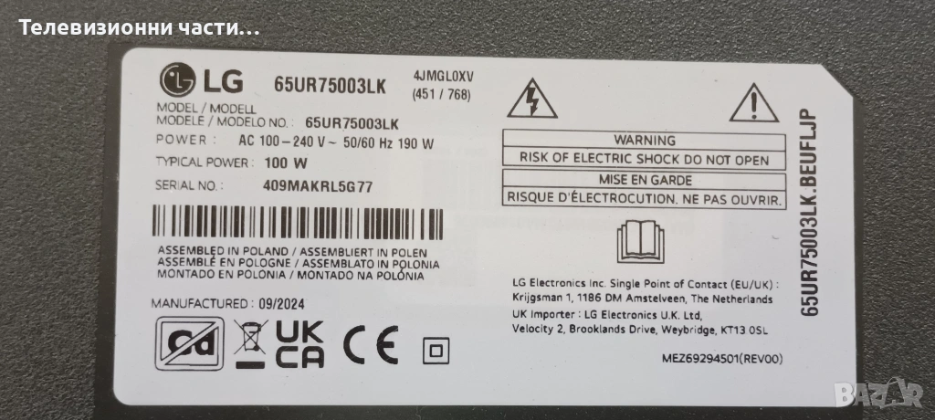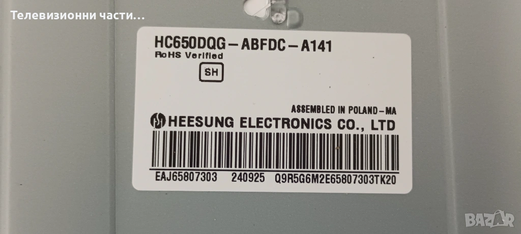 LG 65UR75003LK със счупен екран HC650DQG-ABFDC-A141/EAX70268602(1.0) 4JEBT000-025W/LGP6065AT-22U1