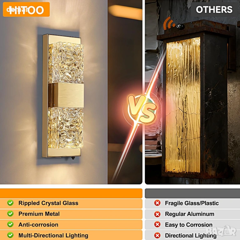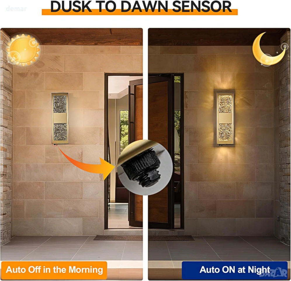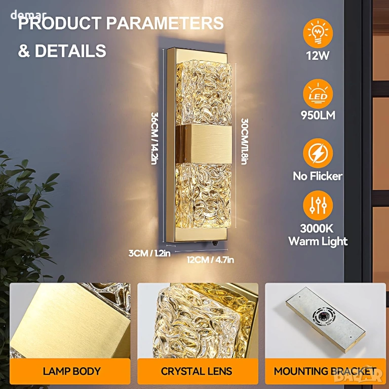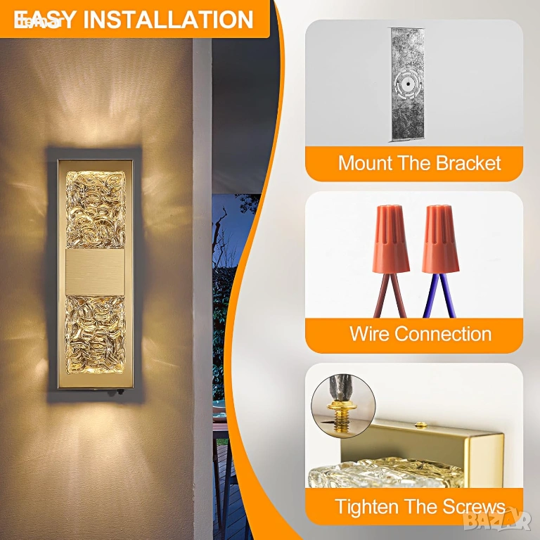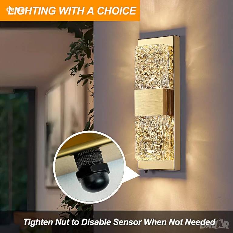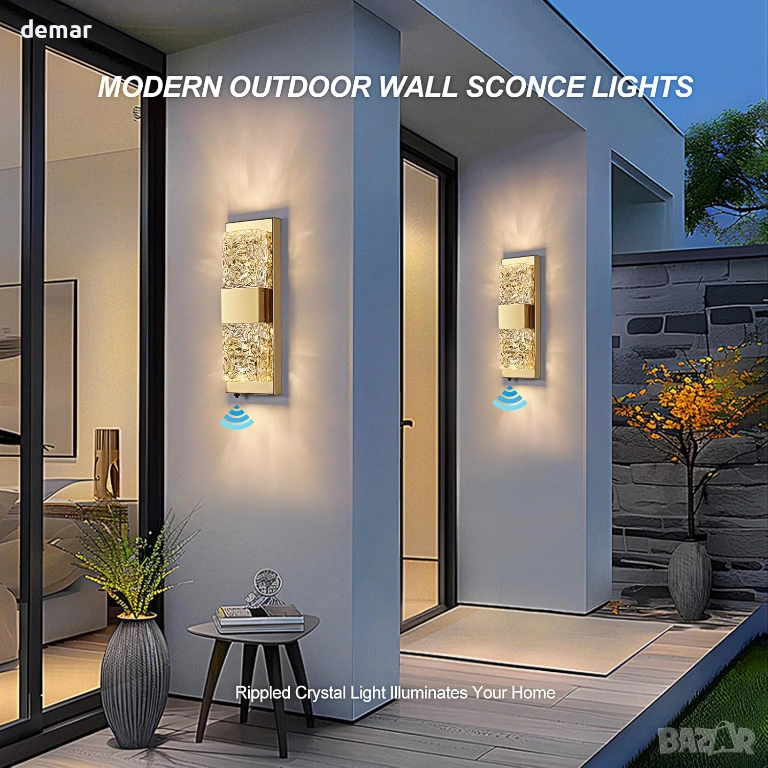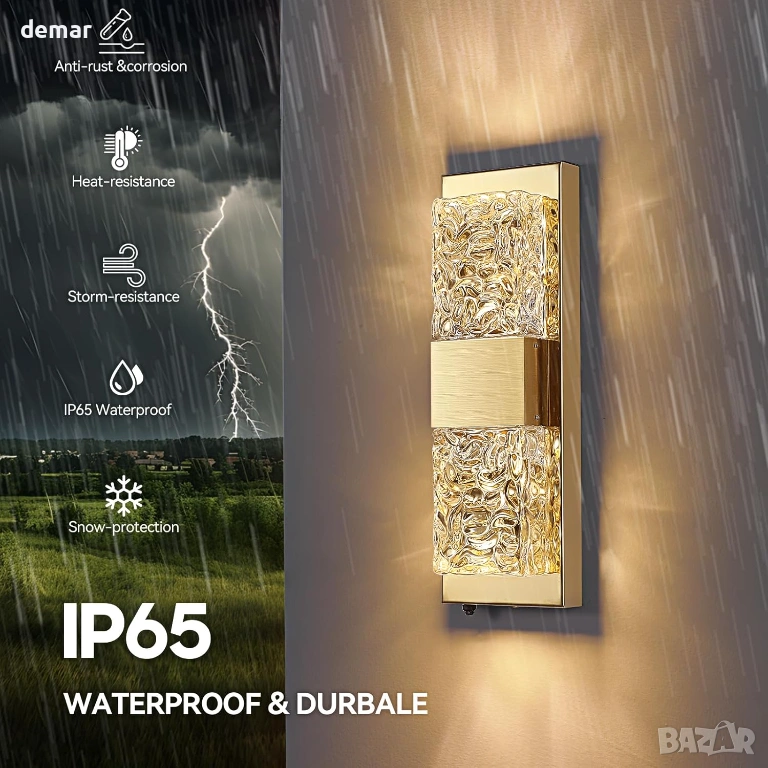 Тази стенна лампа за външно ползване, захранвана от електрическата мрежа, разполага с автоматичен сензор за превключване от здрач до зори за работа без ръце и намалена консумация на енергия, съчетана с ръчно изработен кристален стъклен абажур с ефект на вълнички, който създава впечатляващи светлинни шарки за елегантен външен вид. Изработена от издръжлив метал с водоустойчивост IP65, тя е проектирана да издържа на дъжд, сняг, прах и температурни екстремуми за дългосрочна употреба на открито. Като осветително тяло с кабел, то осигурява постоянно и надеждно осветление, независимо от метеорологичните условия, с вграден дълготраен светодиод, който минимизира поддръжката, като същевременно осигурява топла, комфортна светлина и добра яснота на цветовете за приветливи и сигурни външни пространства.