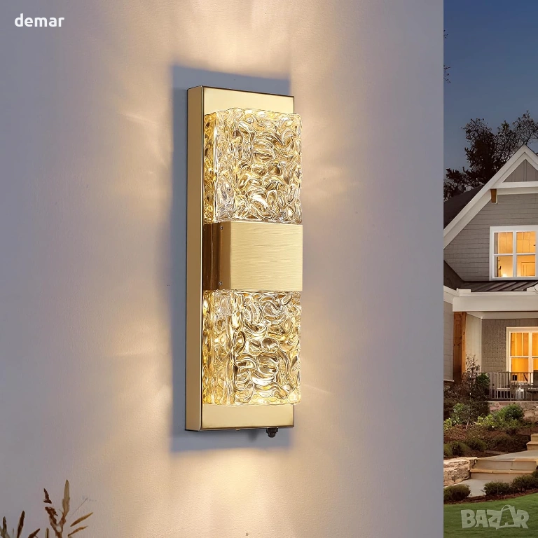 Външна стенна лампа, кристална, златист стенен аплик, IP65, 36 см
