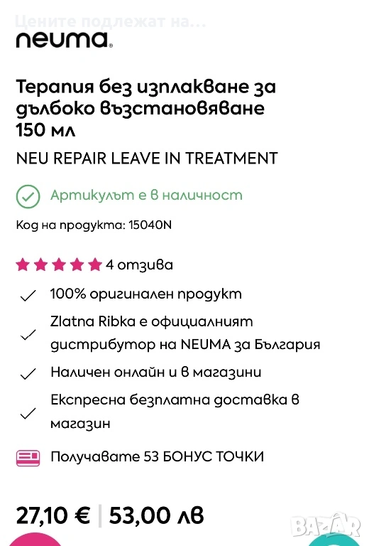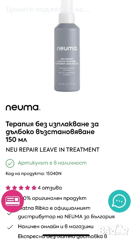 Leave in NEUMA дълбоко възстановяване на косата → Обява 53382431