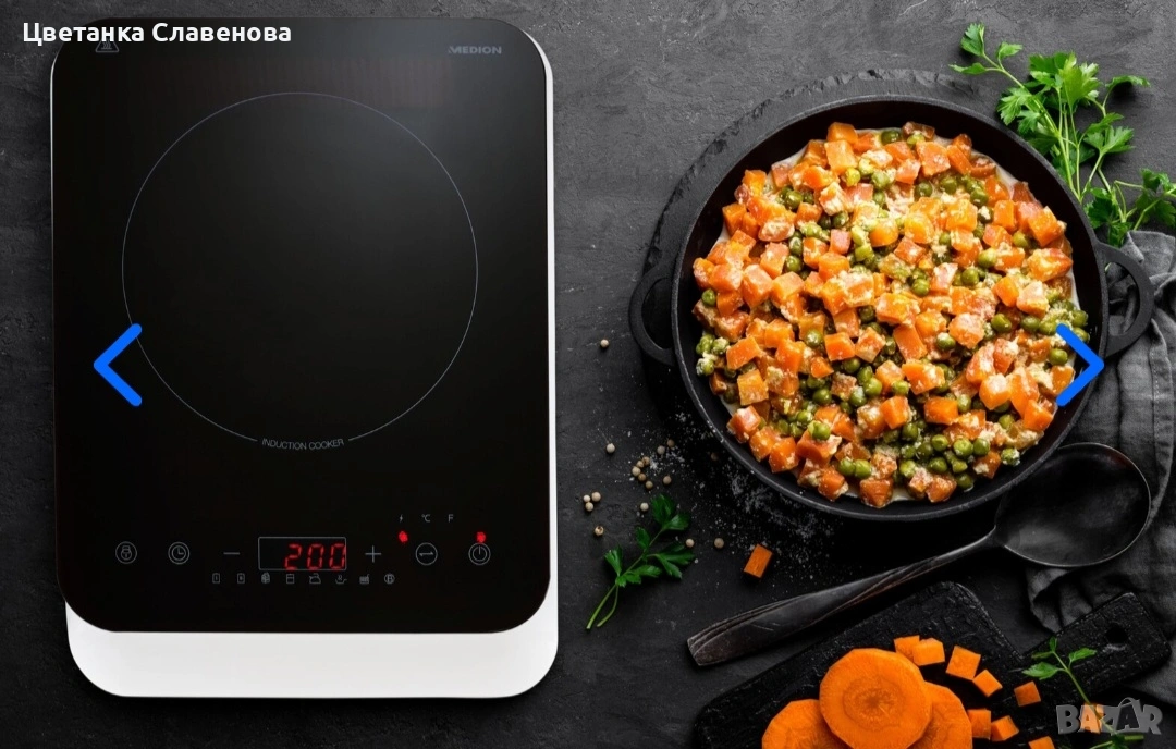 Индукционен котлон MEDION (MD 18490), индукционна мощност 2000 вата, 8 автоматични програми, функции за безопасност, черен
