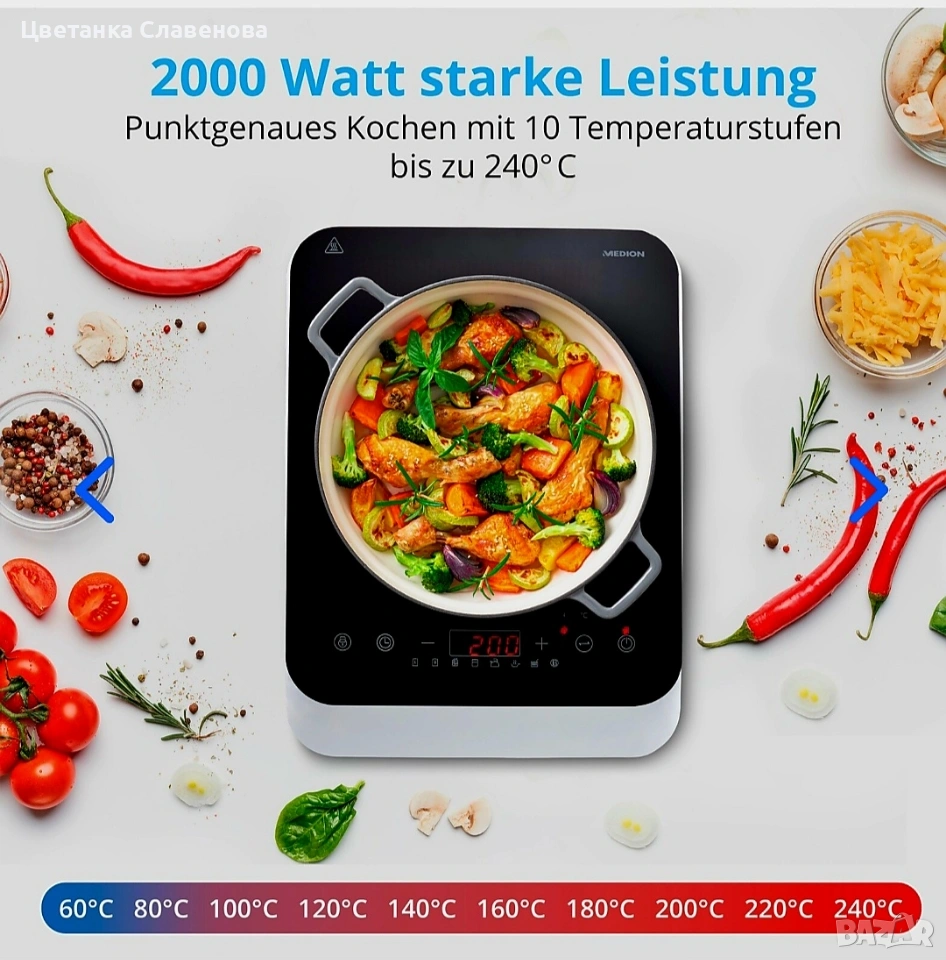 Комфортно готвене: благодарение на мощността на нагряване от 2000 вата, храната ви се приготвя много бързо.