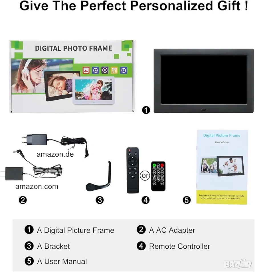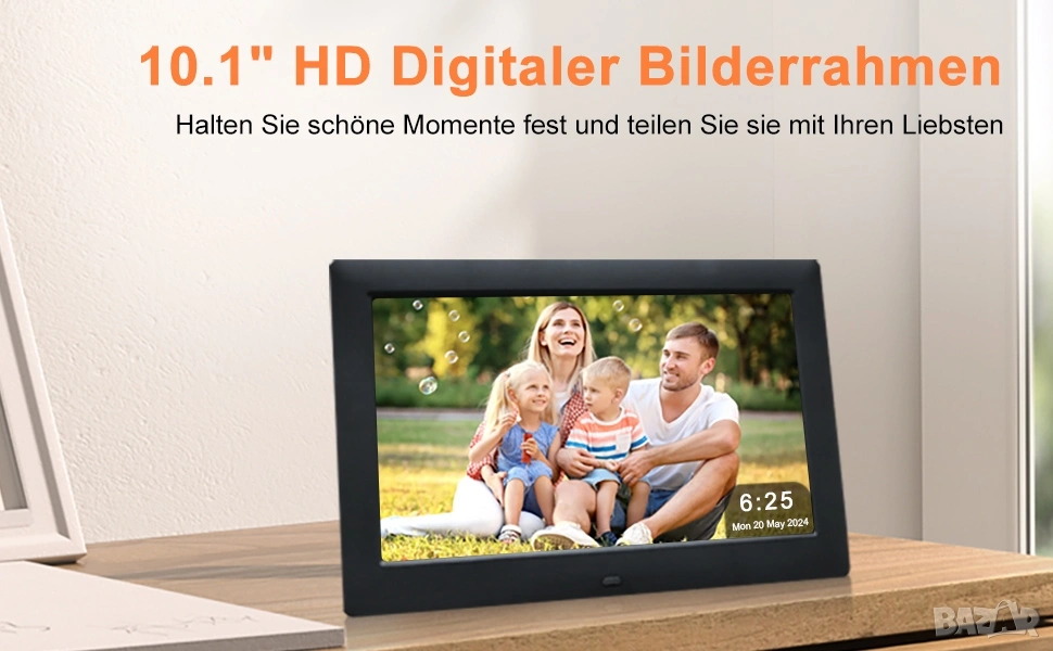 цифрова фоторамка, дигитална рамка 10 инча, IPS дисплей, електронен албум, видео плеър, подарък за семейството, фото рамка с музика, Jaihonda, plug and play рамка.