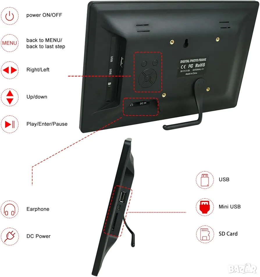 * Мултимедиен център: Освен снимки, рамката поддържа възпроизвеждане на видео и музика. Функцията за слайдшоу позволява добавяне на фонова музика за по-пълноценно изживяване.