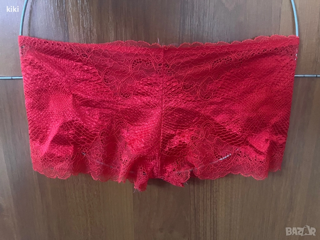Дамски дантелен червен боксер. В талията е с ластик, нов без хартиен носител.