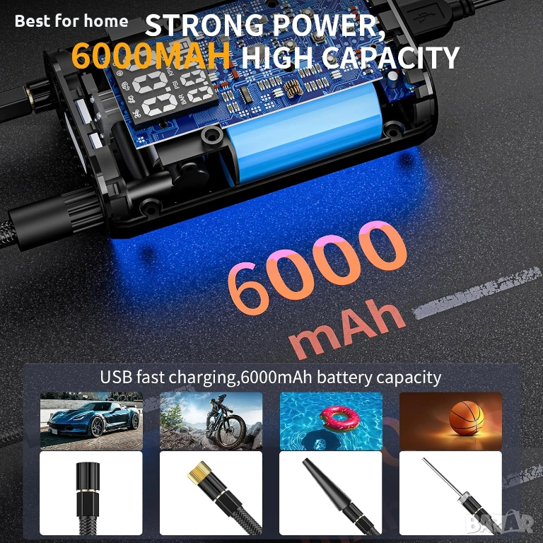 Преносима електронна въздушна помпа 6000 mAh, електрическа велосипедна помпа 150 PSI, батерия