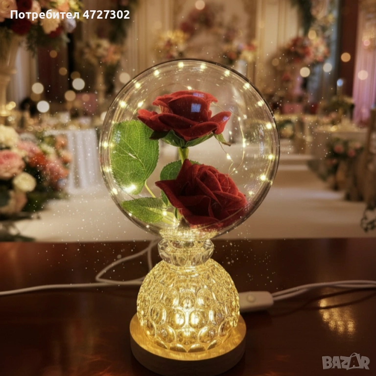 Лампа с вечни рози и топла LED светлина – подарък, който не увяхва → Обява 53382850