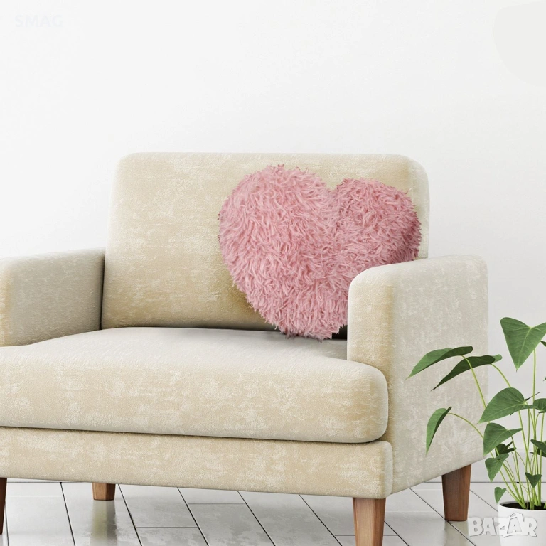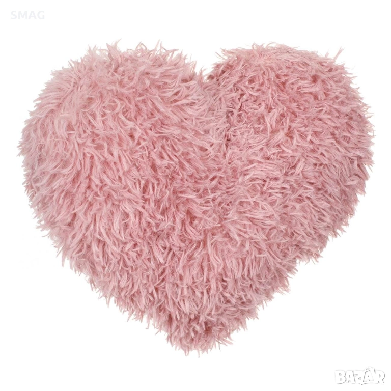 Мека и уютна декоративна възглавница във форма на сърце, изработена от рошав полиестерен плат в нежен розов цвят. Подходяща за зимна и целогодишна декорация на дома, спалнята, детската стая или хола.