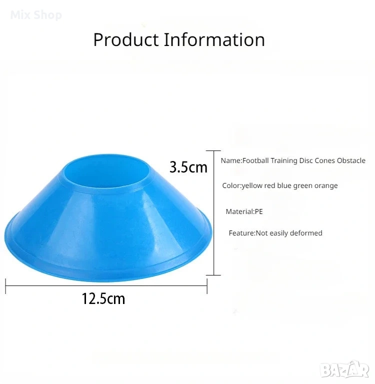- Конуси за дискове с препятствия: 12,5 см x 3,5 см