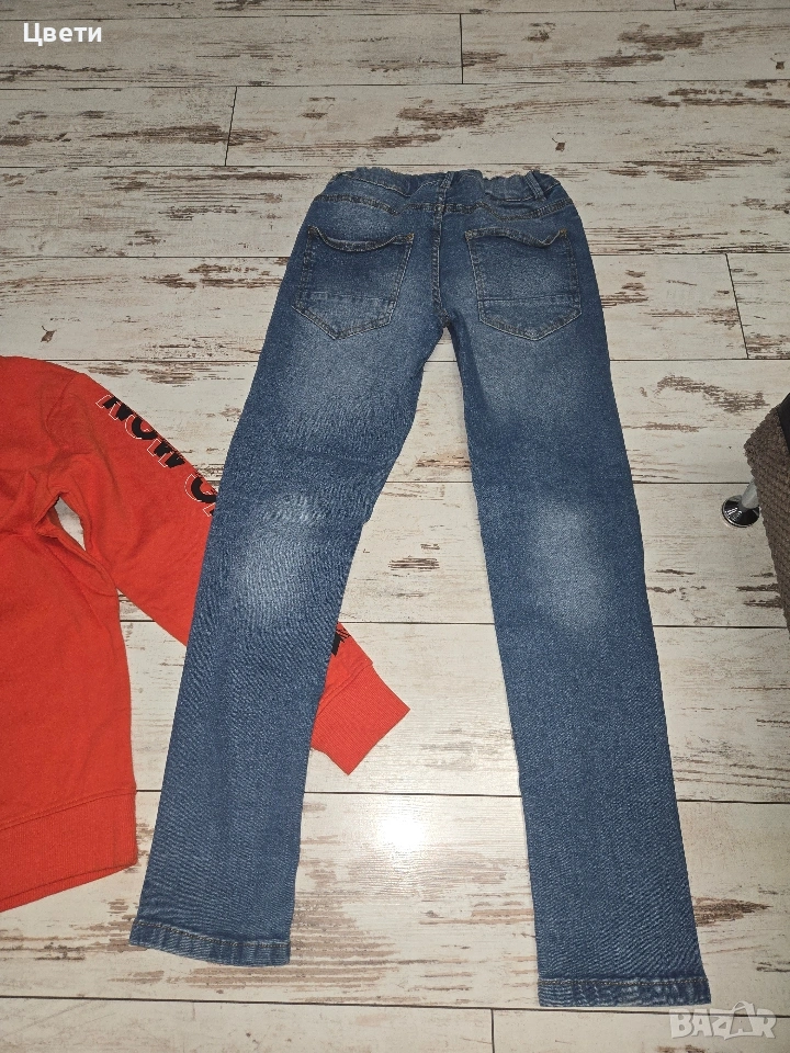 Голям лот дрехи за момче , якето има малка забележка на гърба петънца на бялото , дънки и блуза