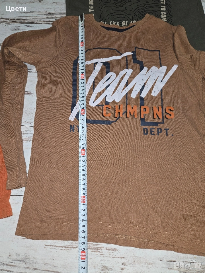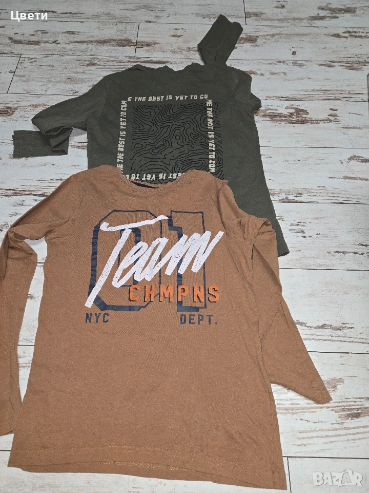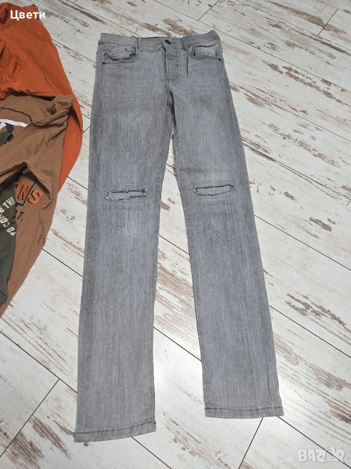 Продавам дънки и три блузи, подходящи за момче. Дрехите са в отлично състояние и подходящи за възраст 146-152см.