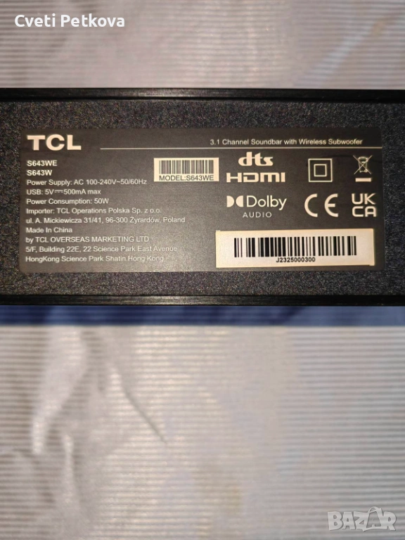 Малко използван САУНДБАР TCL S643W 3.1 SOUNDBAR.