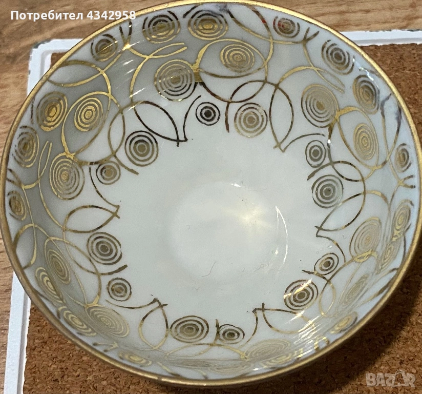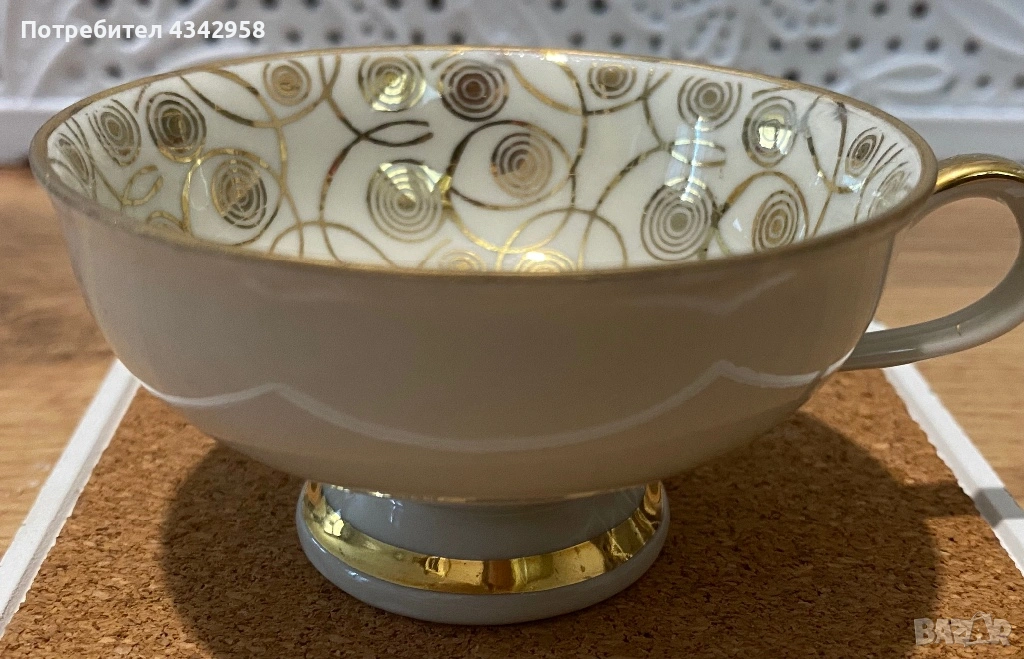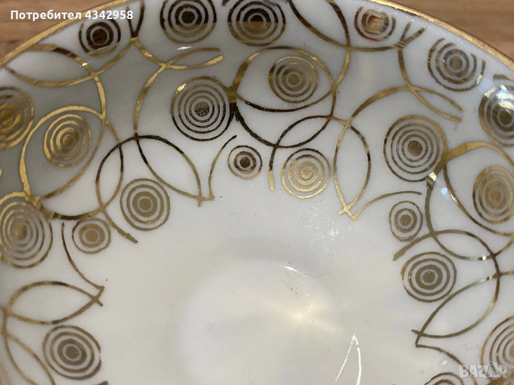 Класически баварски дизайн с красив златен орнамент отвътре и златен кант на основата. Малък и изискан модел тип demitasse – идеален за еспресо, късо кафе или като декоративен акцент във винтидж сервиз.