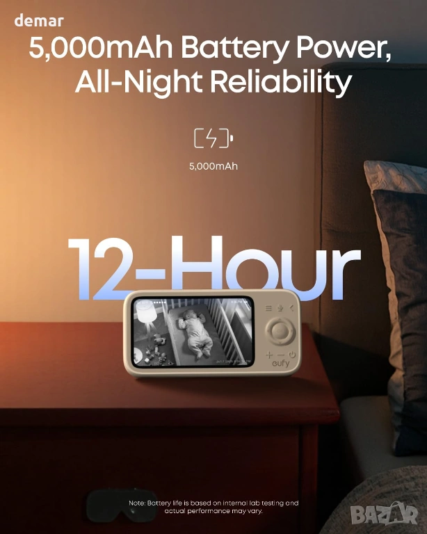 Бебефон eufy C10 с 2K HD камера, 4.5" 480p дисплей, 4× увеличение
