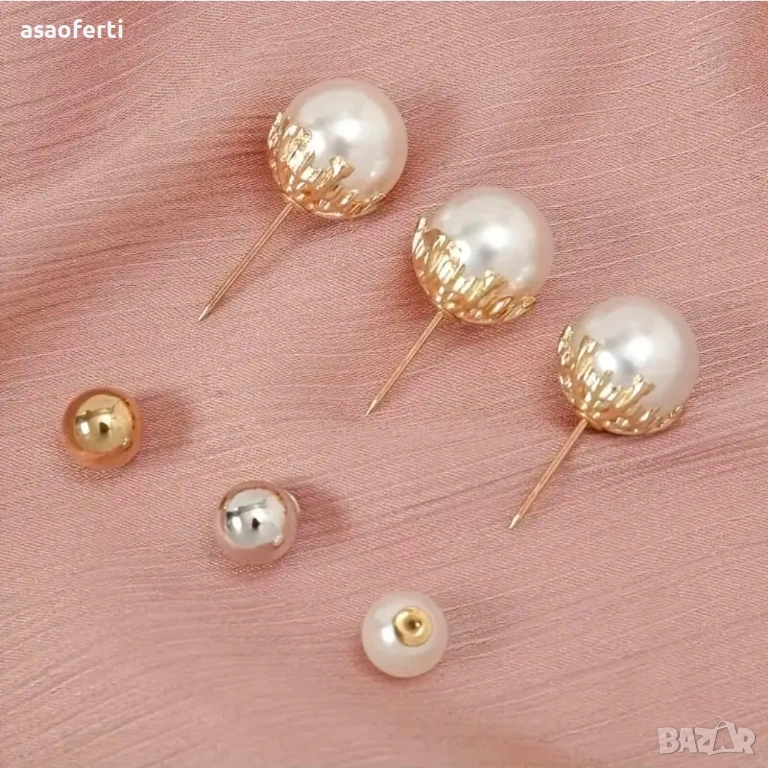 Комплект от 3 броя елегантни декоративни брошки с перли и златист детайл