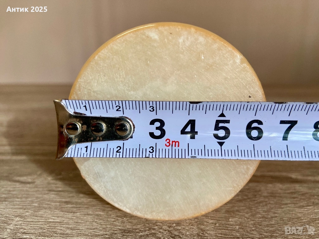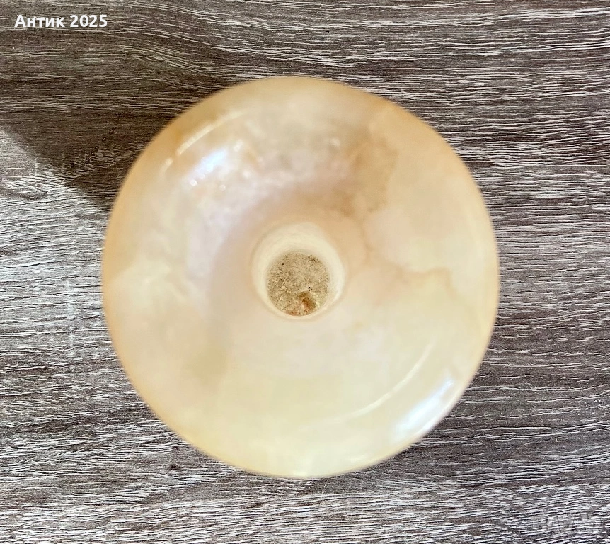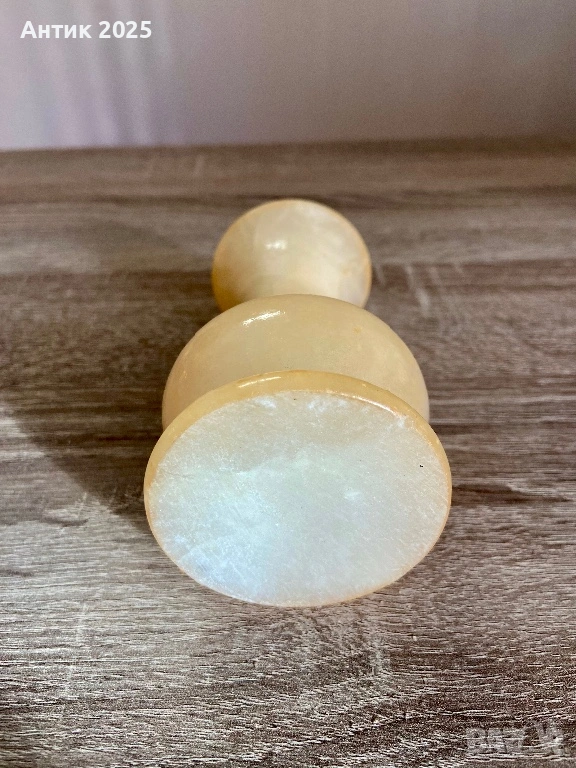По информация от предишния собственик материалът е оникс, но визуално по-скоро наподобява мрамор или алабастър. Точният вид на камъка не е потвърден, затова предметът се предлага без категорична атрибуция.
