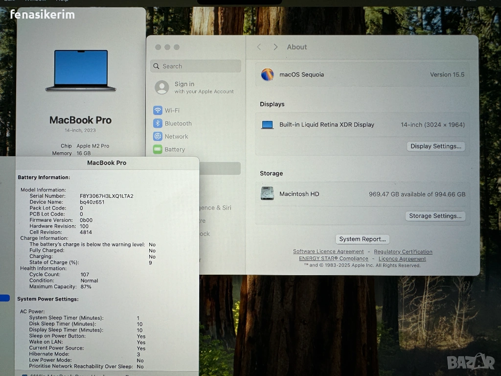 Лаптопа е в отлично визуално и безупречно техническо състояние. Батерията е в normal condition, само на 107 цикъла и издържа до 16 часа. В комплект със зарядно у-во + MagSafe 3 кабел. Инсталиран новия Mac OS Sequoia 15.7, преди пускане на обявата, без акаунти, iCloud пароли, MDM и т.н.