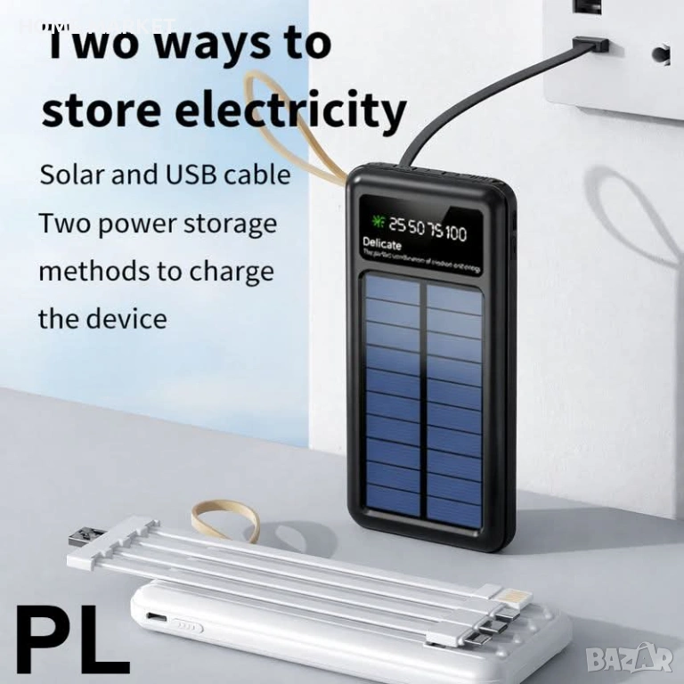 Соларен панел: Вграден панел, който осигурява възможност за зареждане чрез слънчева светлина – идеален за къмпинг или пътувания.
