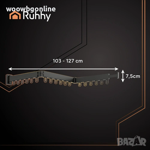 🧺 Сгъваема сушилня за дрехи за стенен монтаж RUHHY – разтегателна стойка с куки