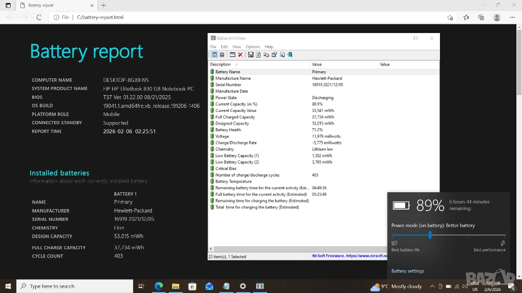 БАТЕРИЯ - HP Long Life Battery, 3-cell, 53 WHr – издръжливост 6-7 часа в зависимост от настройки и натоварване.