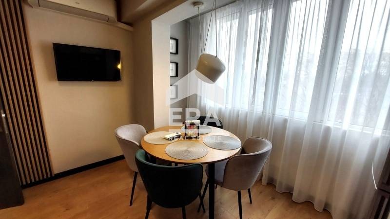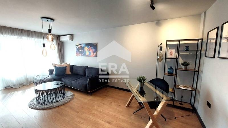 Жилището се отдава модерно обзаведено и оборудвано с ел. уреди - вградена фурна с керамични котлони и аспиратор, хладилник, пералня, съдомиялна и микровълнова печка. Във всяка от трите отделни стаи има монтирани климатици и телевизори. Подовото покритие е ламинат, банята е с фаянс и теракот. Поставени са стилни осветителни тела и интериорни врати, ПВЦ дограма Rehau. Има домофонна система. Паркира се в зелена зона. Отдава се дългосрочно.