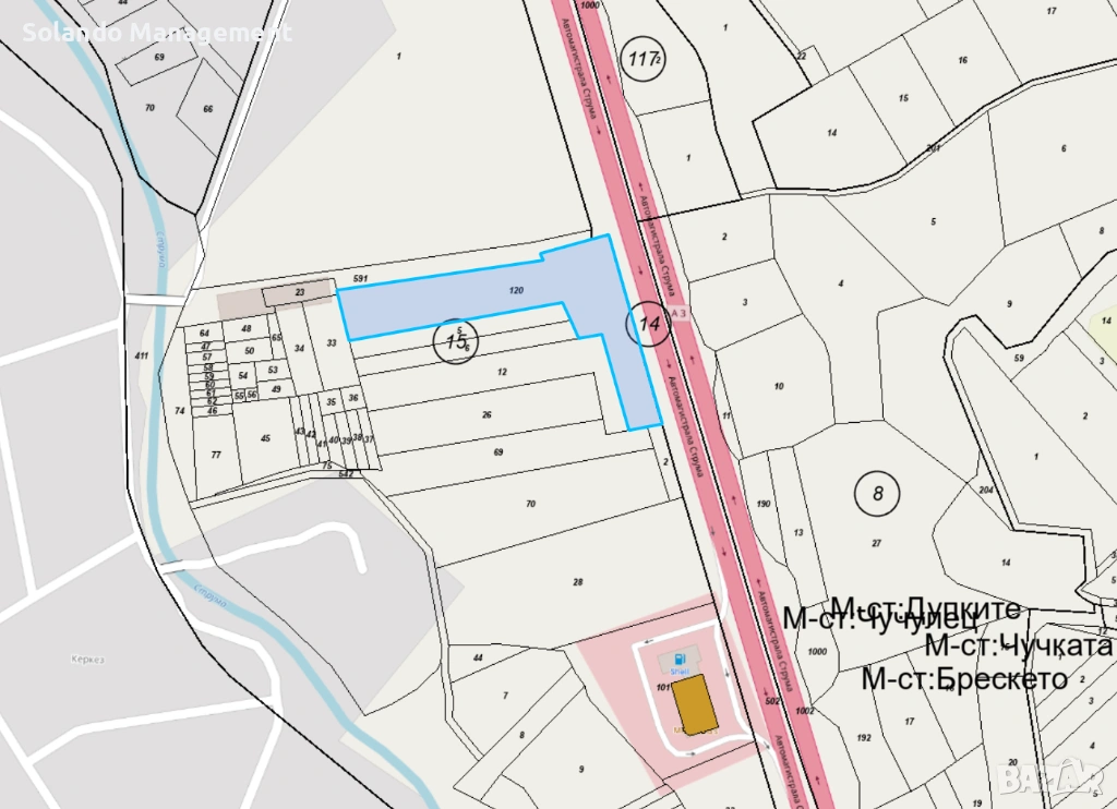 Парцел под наем | Лице към АМ „СТРУМА“ | ТОК + ВОДА